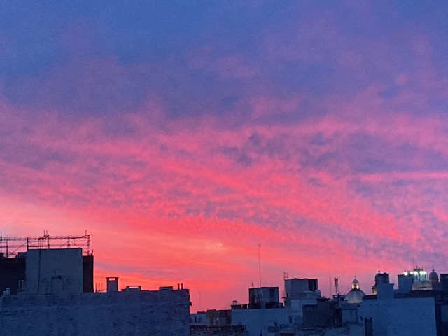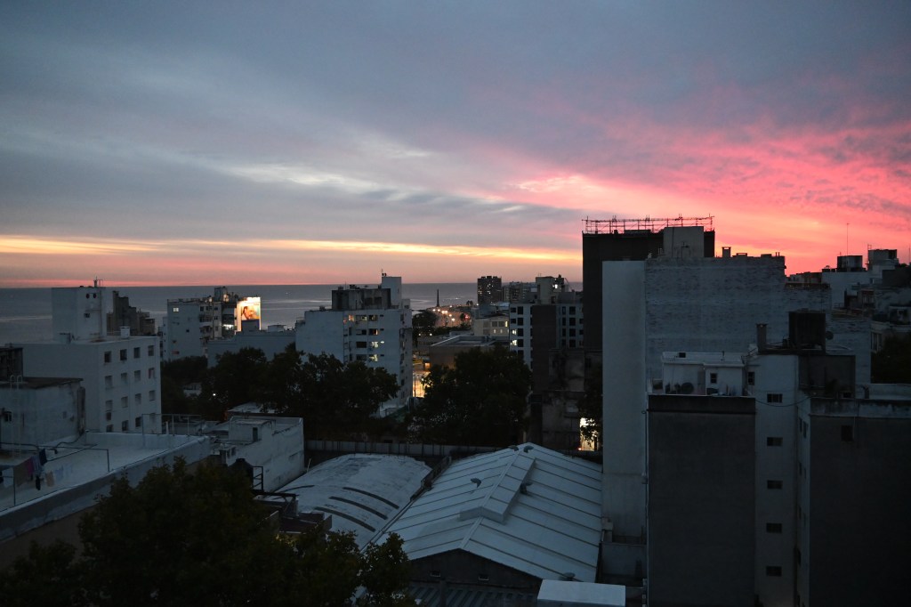 Nach kurzen drei Stunden waren wir dann in Montevideo. Das zentralgelegene Hotel fanden wir problemlos. Wir hatten Glück, bekamen ein Zimmer im zehnten Stock mit einer großen Terrasse und geilem Ausblick. Als Zugabe gab es abends noch ein einmaliges Schauspiel beim Sonnenuntergang.