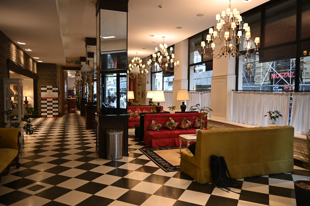 Leider war das Wetter regnerisch. Für den Ausgleich sorgte Andrea, die ein wunderschönes Hotel gefunden hatte. Das „Tango de Mayo Hotel“, mitten im historischen Zentrum von Buenos Aires. Hier die Lobby.
