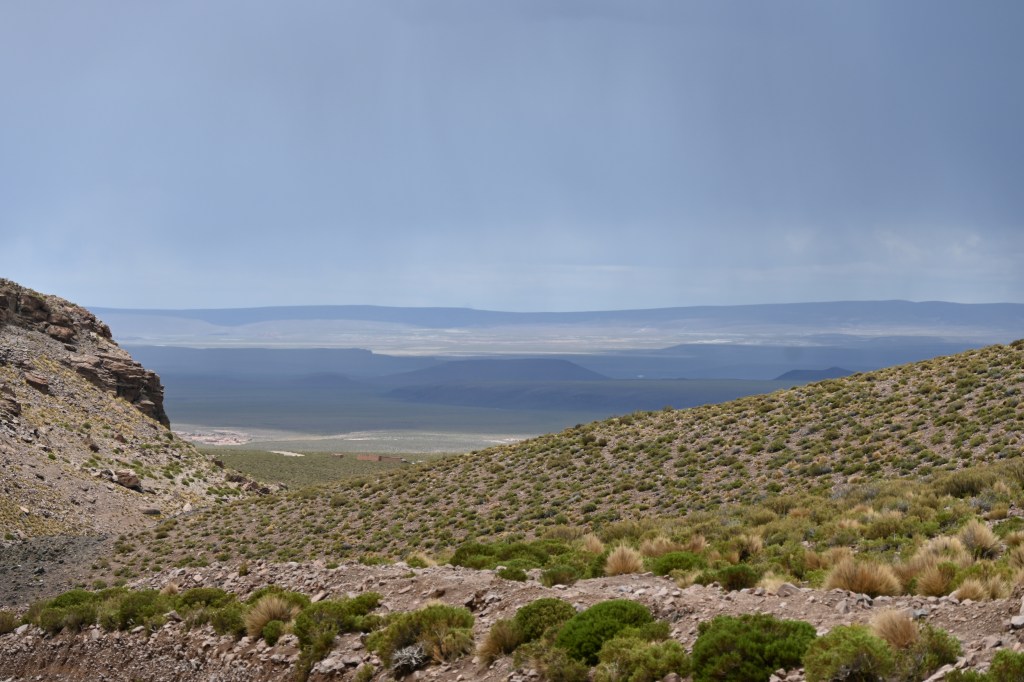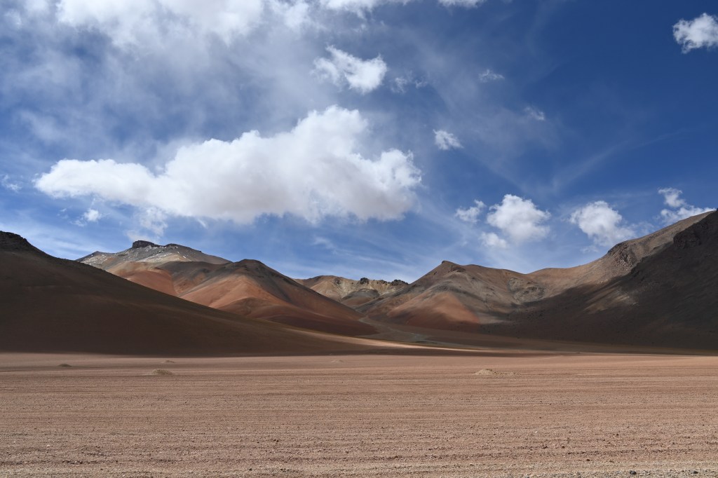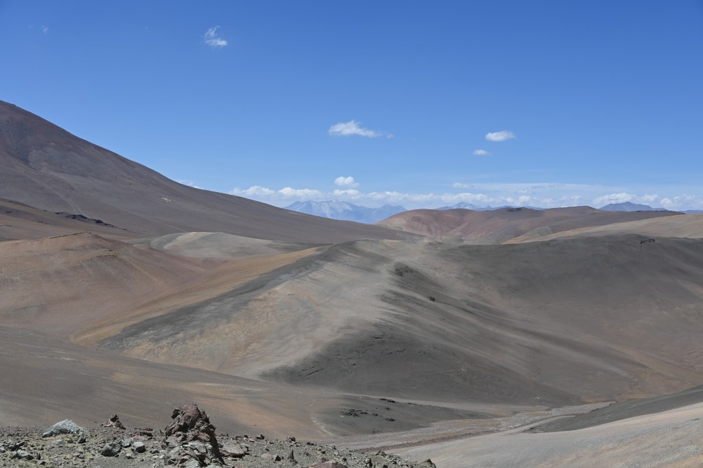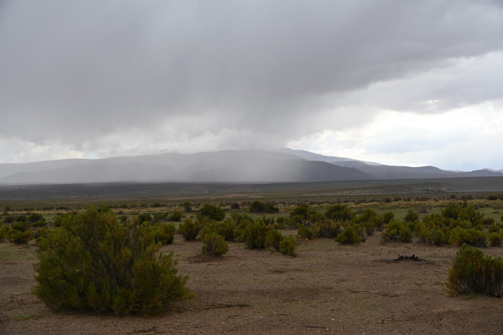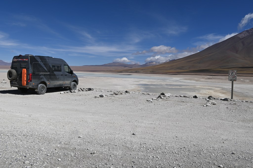 La Paz liegt in einem Talkessel auf ca. 3200 m Höhe. Es ist mit der Zeit aus diesem Kessel etwas herausgewachsen woraus die Stadt El Alto (die Hohe, ca. 4100 m über Meeresspiegel) entstanden ist, die heute größer als La Paz ist (La Paz ca. 800T Einwohner, El Alto ca. 1,2 Mio.). Durch El Alto mussten wir durchfahren, um unseren Campspot bei dem Hotel Oberland erreichen zu können. Davon gibt es leider keine Bilder, da diese Fahrt der reinste Horror war. An jeder Ampel verkeilte sich der Verkehr, weil von allen Seiten Autos versuchten einen Platz gut zu machen, oder in den laufenden Verkehr reinzudrängen. Zu allem Überfluss kamen noch ein paar Umleitungen auf schmalere Nebenstraßen, auf denen auch noch ein Markt stattfand. Es war unbeschreiblich und dauerte für vielleicht 7 bis 8 km rd. 2 Stunden. Danach waren wir beide verkrampft und ziemlich fertig.