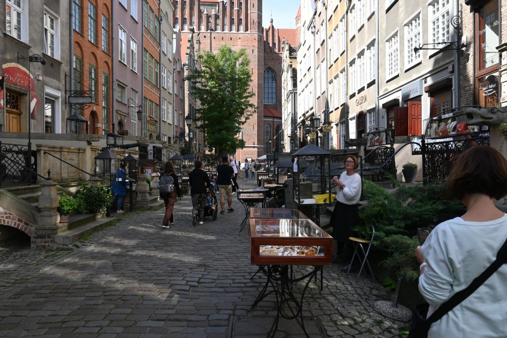 Ganz anders stellt sich die Mariacka (Frauengasse/Mariengasse) dar. Hier überwiegt das Kunsthandwerk, vor allem mit Silberschmieden und Bernsteinschmuck. Daneben ein wunderschönes Café in und ein paar kleine Restaurants. Sah schon fast aus wie die Winkelgasse, vor allem, weil viele der kleinen Läden im Souterrain zu finden waren.