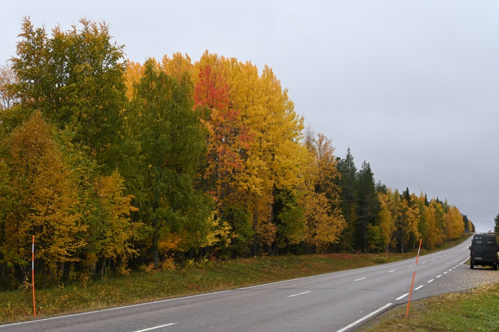 Am nächsten Morgen war das Wetter etwas besser (es gab nur noch Regenschauer). Wir fuhren weiter hoch in die Polarregion, aber auch schon Richtung Schweden. Die Natur wurde karger und herbstlicher.