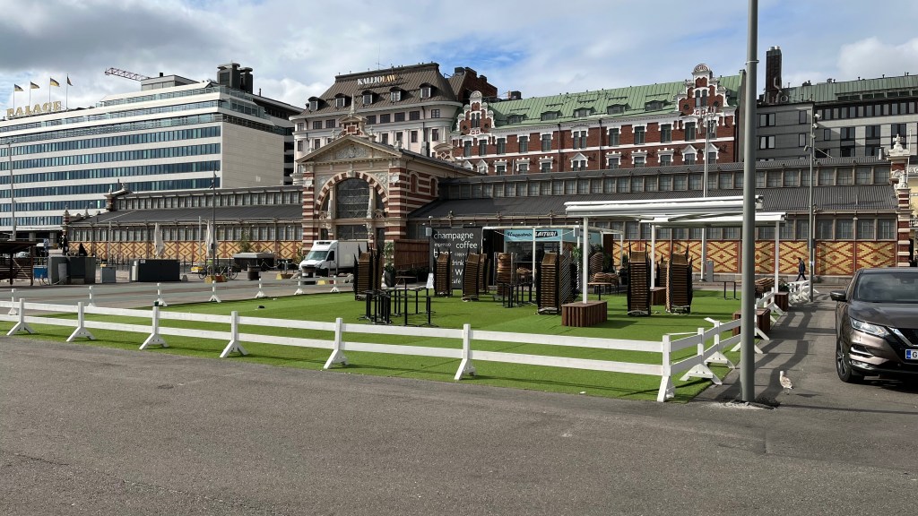 Danach machten wir uns auf, die Hakaniemen Kauppahalli, ca. 20 min. zu Fuß entfernt vom Hafen, zu besichtigen. Als wir ankamen, mussten wir allerdings feststellen, dass der Markt von Bauzäunen umstellt war. Zurück zum Bahnhof nahmen wir dann die Straßenbahn. Wir setzten uns in ein Caféhaus und beschlossen, anschließend eine ‚Hop on Hop off‘ Tour durch Helsinki zu machen. Ist ja auch einfacher, als alles zu Fuß zu erledigen. Hier noch ein paar Eindrücke.